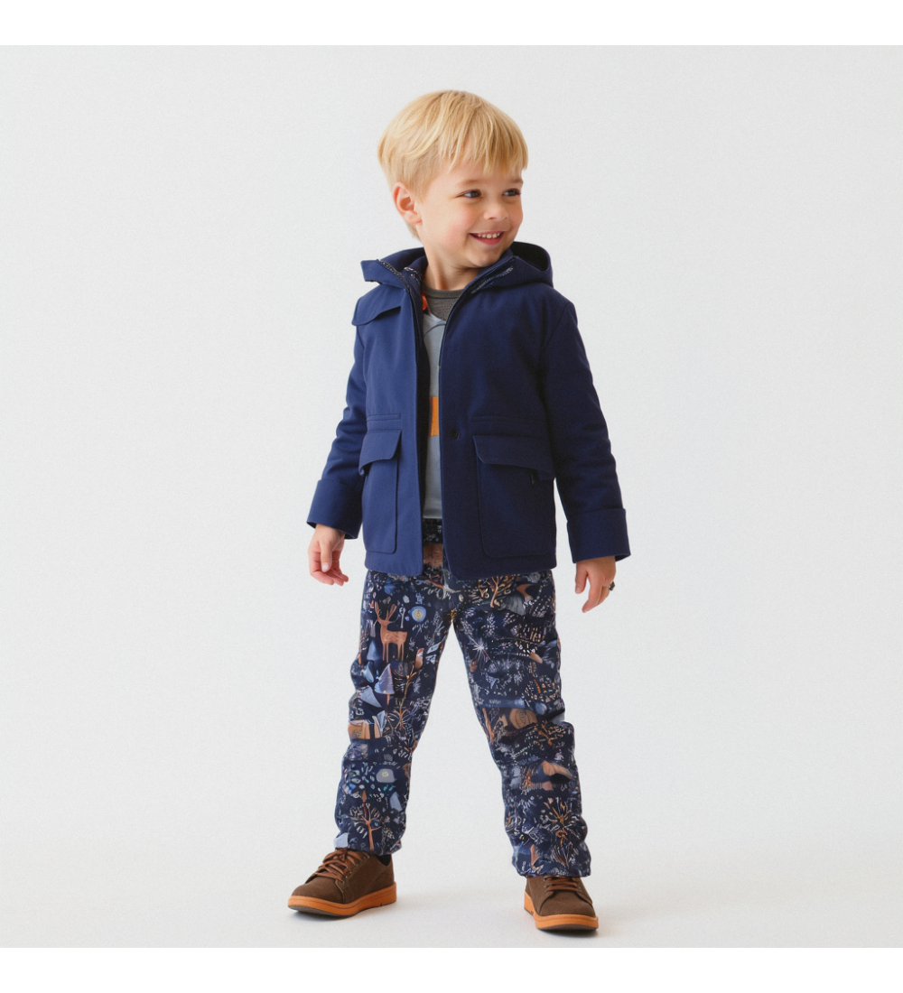 Die T-RUIL-Hose wurde speziell für Kinder entworfen, die Outdoor-Aktivitäten lieben. Sie zeichnet sich durch ihre Funktionalität und das charmante Winterwaldmuster aus, das die Magie und Fantasie der Saison widerspiegelt. Für kalte oder regnerische Tage konzipiert, bietet sie Wärme, Komfort und Stil, mit einem weichen weißen Fleecefutter, das ein gemütliches Gefühl und eine hervorragende Wärmeisolierung gewährleistet. Der wasserabweisende und atmungsaktive Stoff schützt vor leichtem Regen und Wind, während die Strapazierfähigkeit sie perfekt für aktive Kinder macht. Außerdem machen die neutralen und dezenten Farben sie leicht kombinierbar mit verschiedenen Kleidungsstücken, sodass vielseitige Looks für jede Gelegenheit entstehen.