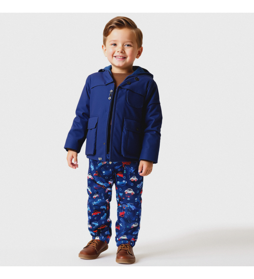 Descubre los W-MAUTO, los pantalones perfectos de invierno diseñados para la comodidad y protección de los niños durante los días fríos. Con un fondo azul sutil y estampados de mini autos, estos pantalones son los favoritos de los pequeños.