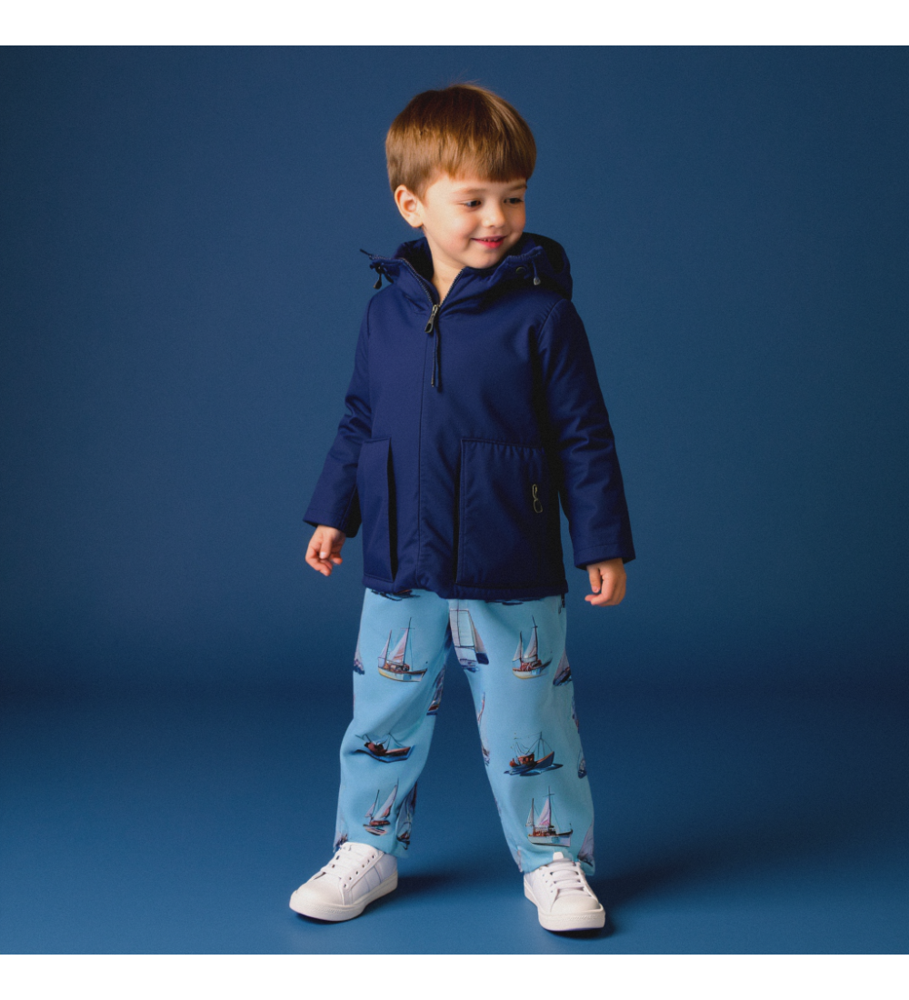 El Pantalón Impermeable T-VELOS está diseñado para aventureros cautivados por el mundo náutico. Combinan elegancia atemporal y funcionalidad, siendo ideales para niños que aman el mar y la exploración al aire libre. Confeccionados con tela impermeable y un refinado estampado náutico sobre un fondo azul claro, garantizan estilo y comodidad incluso en climas fríos, ventosos o lluviosos. El forro polar blanco proporciona una calidez y confort inigualables, mientras que los materiales duraderos y fáciles de limpiar los hacen perfectos para el juego activo. Ofrecen libertad de movimiento, permitiendo a los niños correr, saltar y explorar sin restricciones. ¡Ideales para pequeños capitanes listos para conquistar el mundo!