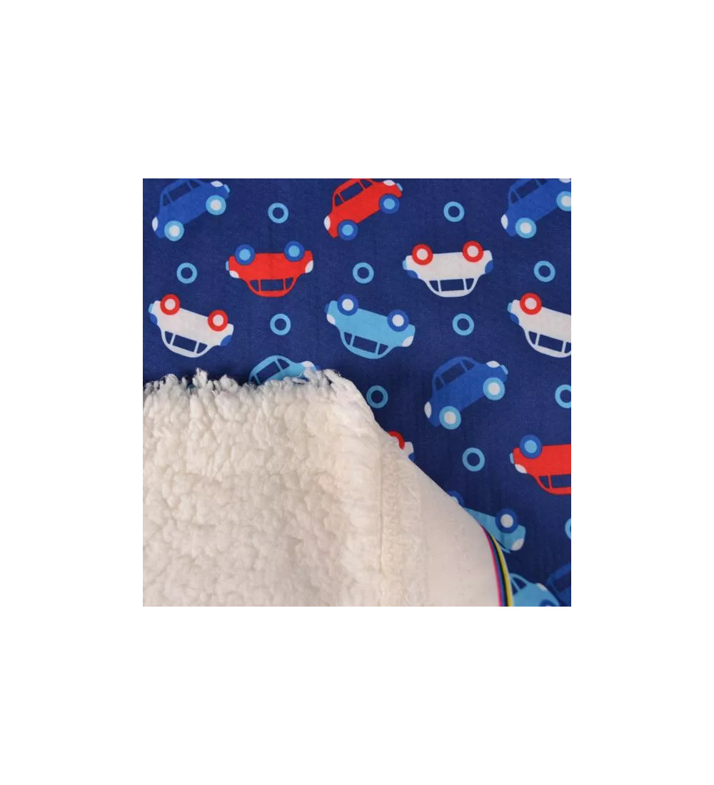W-MAUTO: Functional Blue Pants with Beige Plush Lining and Fun Car Print