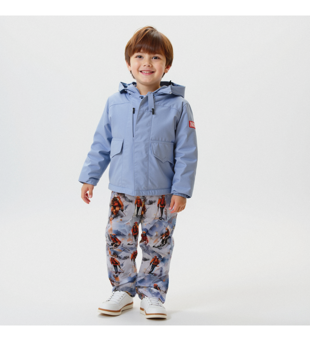 Discover the W-SKIER, the perfect winter pants designed for maximum comfort and protection for kids during chilly days. With a subtle background and bold skier print in the mountains, these pants are a truly authentic choice.